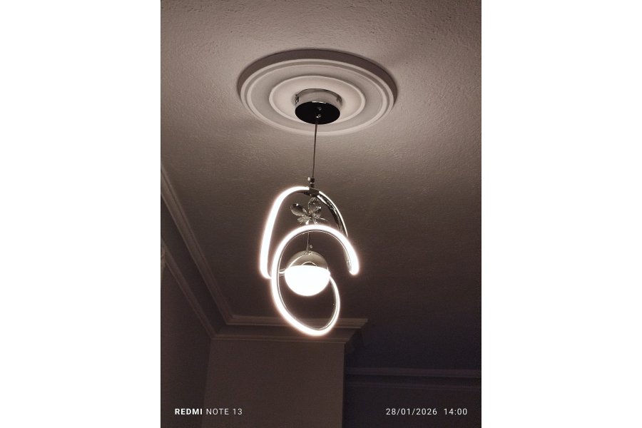 Modern tasarıma sahip LED avize, şık ve estetik görünümüyle salon, oturma odası veya yatak odaları için idealdir. Işık performansı yüksek olup ortamı homojen şekilde aydınlatır.
