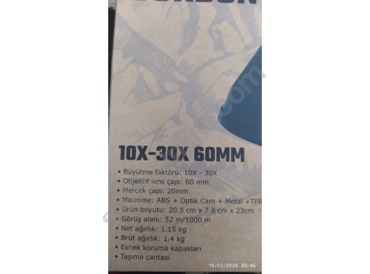 dürbün 10-30x60 zoomlu dürbün. Görüş alanı 52M/1000M AT 10X