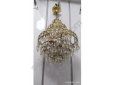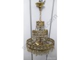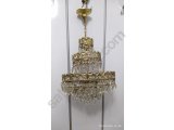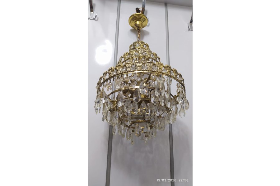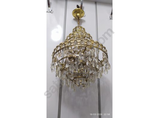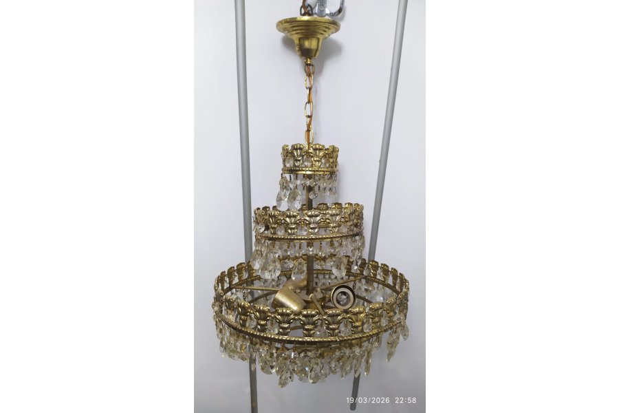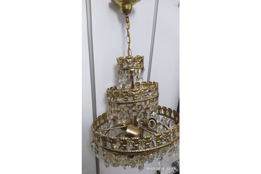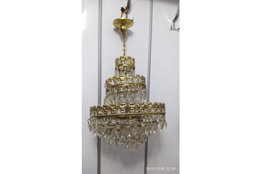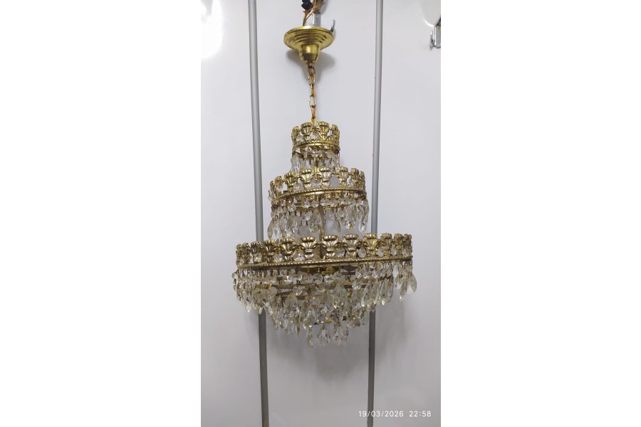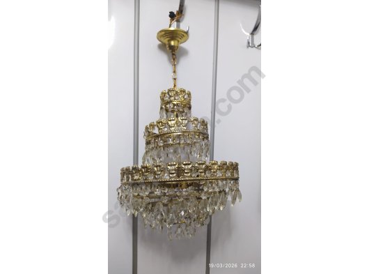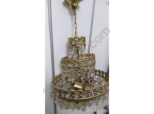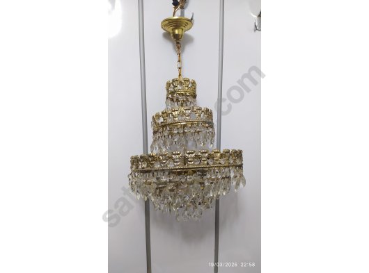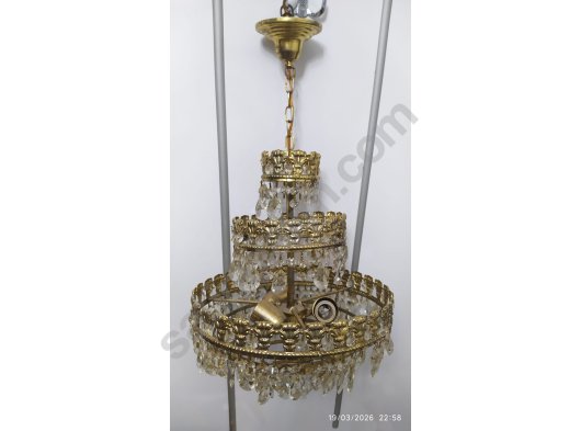 Sağlam çalışır durum da üç katlı ve üç lambalı antika kristal avize